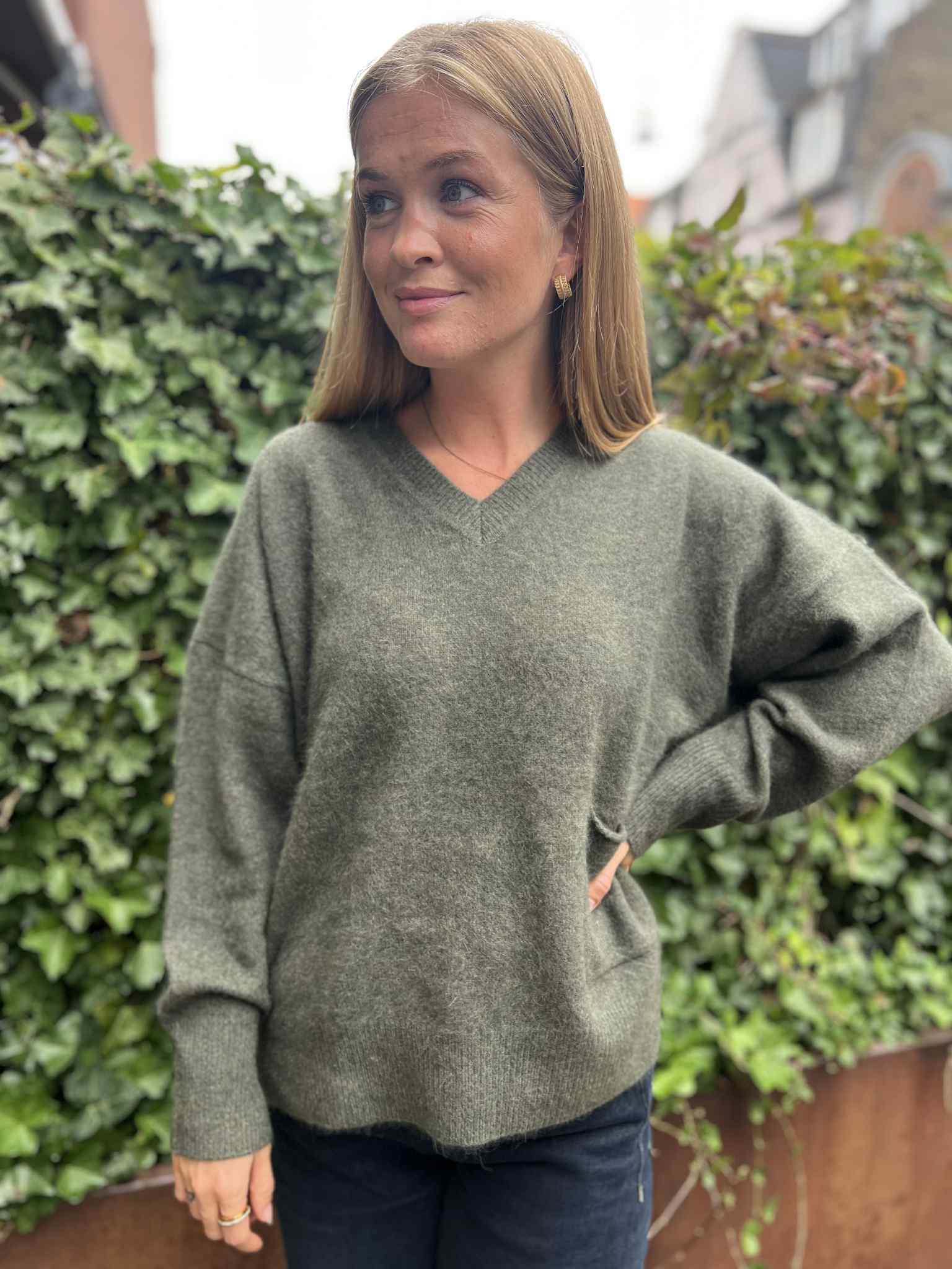 Den smukke grønne farve tilføjer et naturligt og roligt udtryk til garderoben – let at style med både neutrale toner og stærkere farver. En enkelt brystlomme og rene linjer giver trøjen et afslappet, men sofistikeret look.