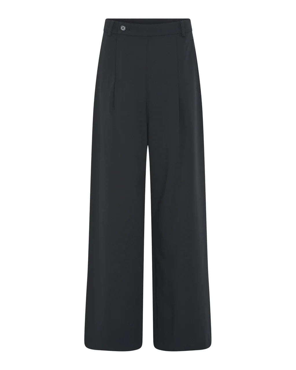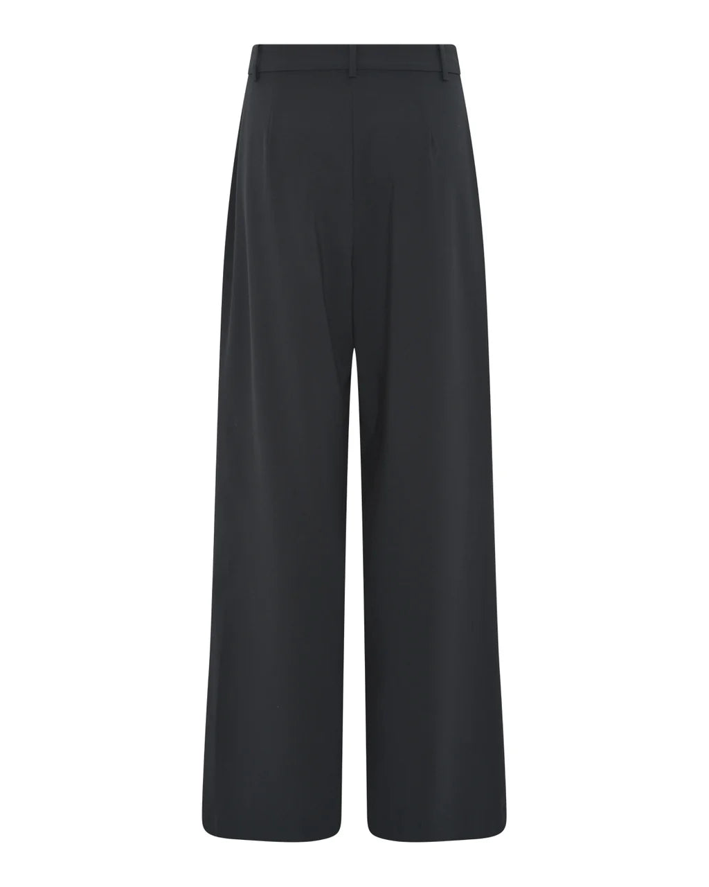 Trine Pants er klassiske bukser med høj talje og brede ben, der kombinerer et tidløst snit med et moderne udtryk. Pressefolder foran, bæltestropper og en sideslukning skaber et rent og elegant look, der er let at style.