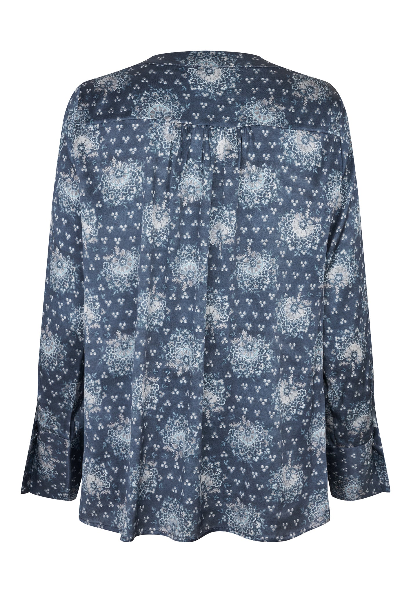 Printet består af små, fine blomsterbuketter spredt over en dyb blå baggrund – perfekt til både hverdag og fest. Brug blusen til bukser eller nederdel, eller kombiner med en blazer for et komplet og stilfuldt look.