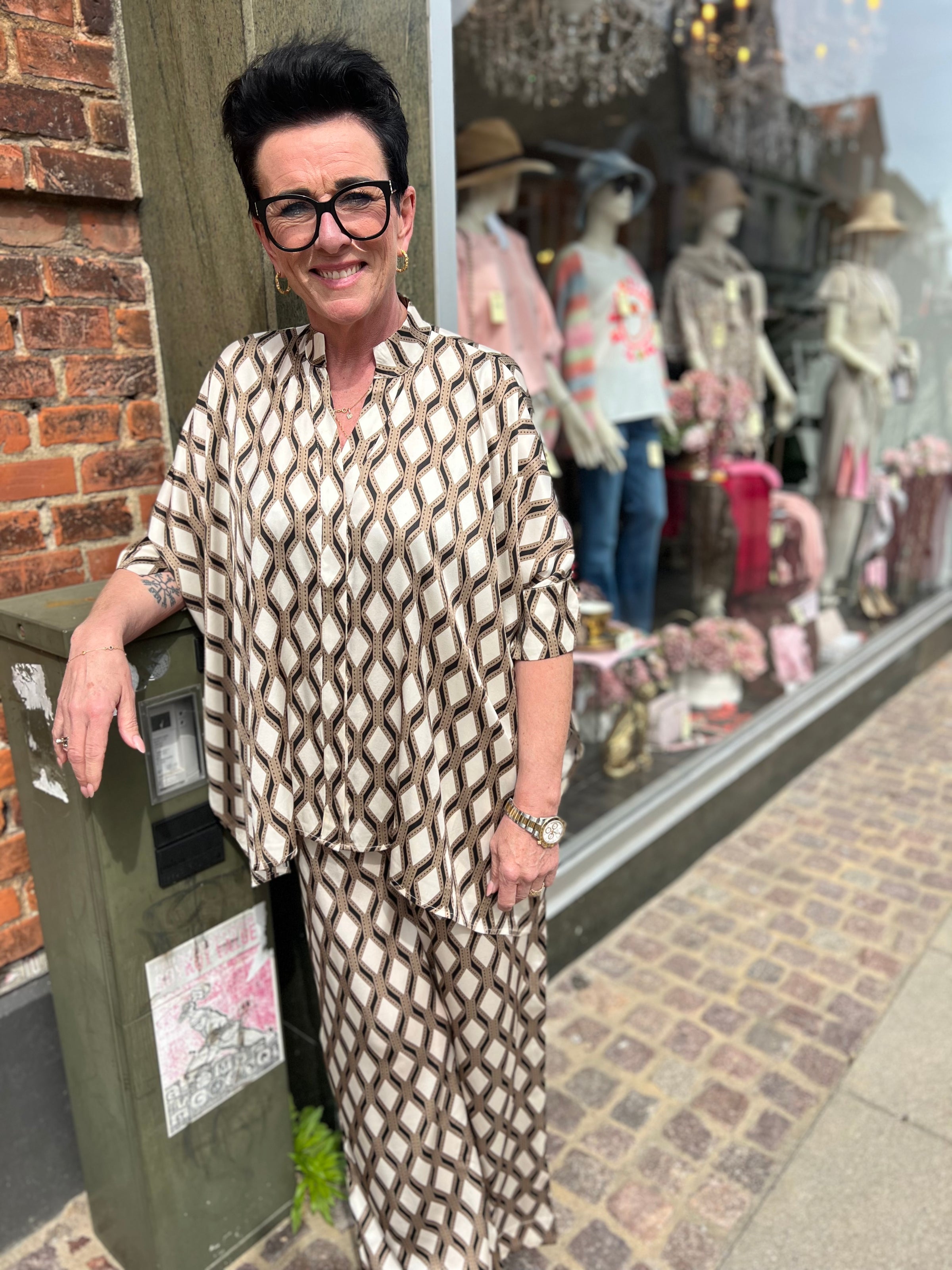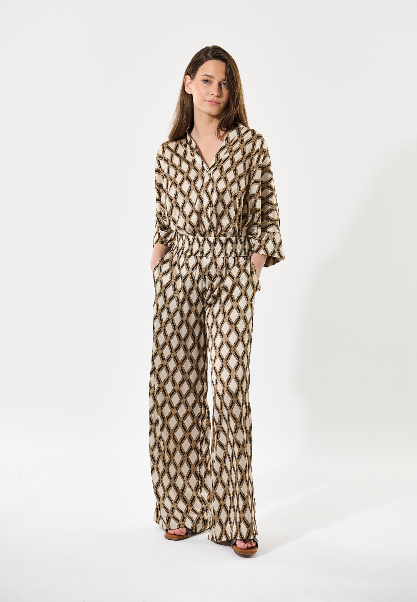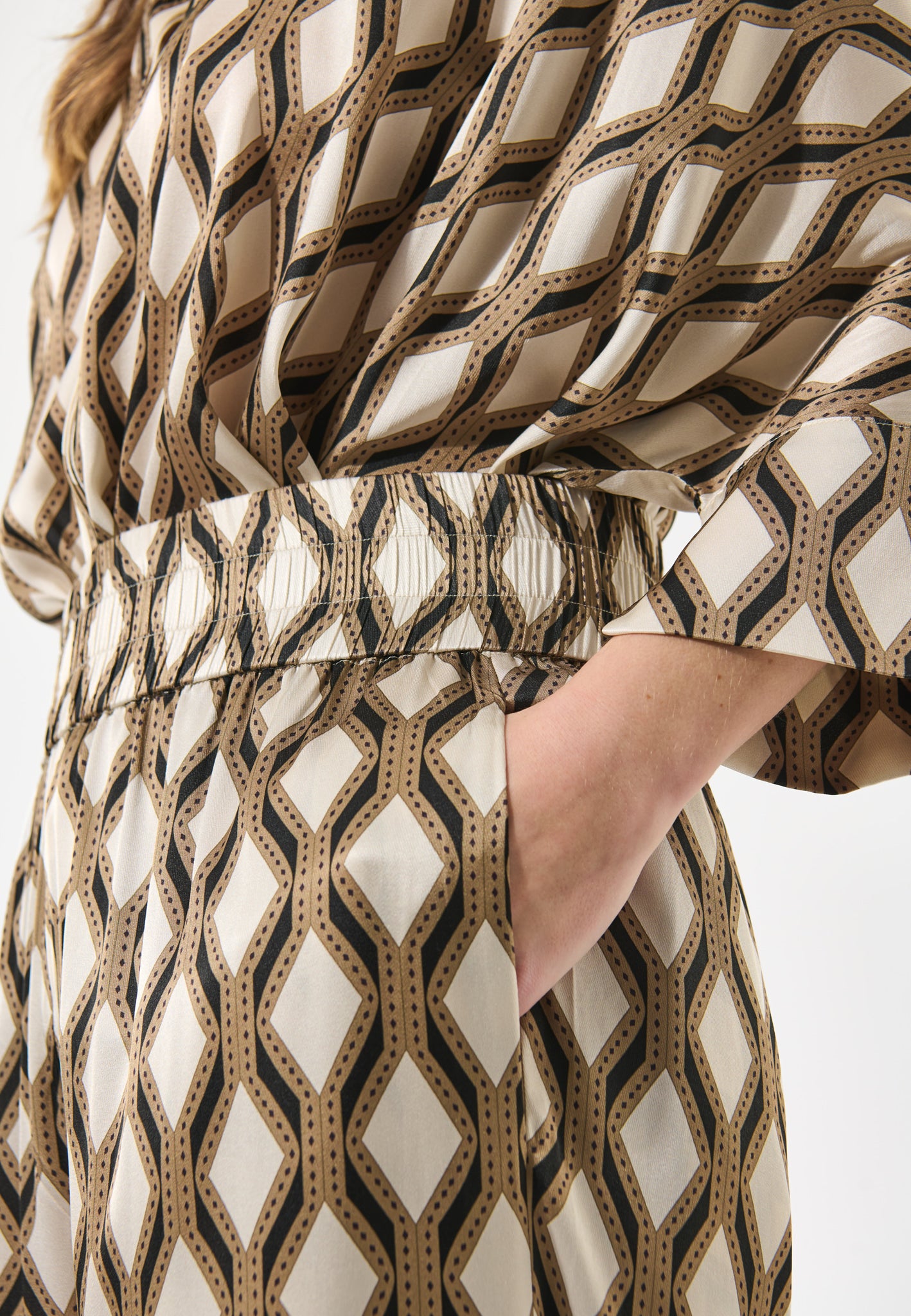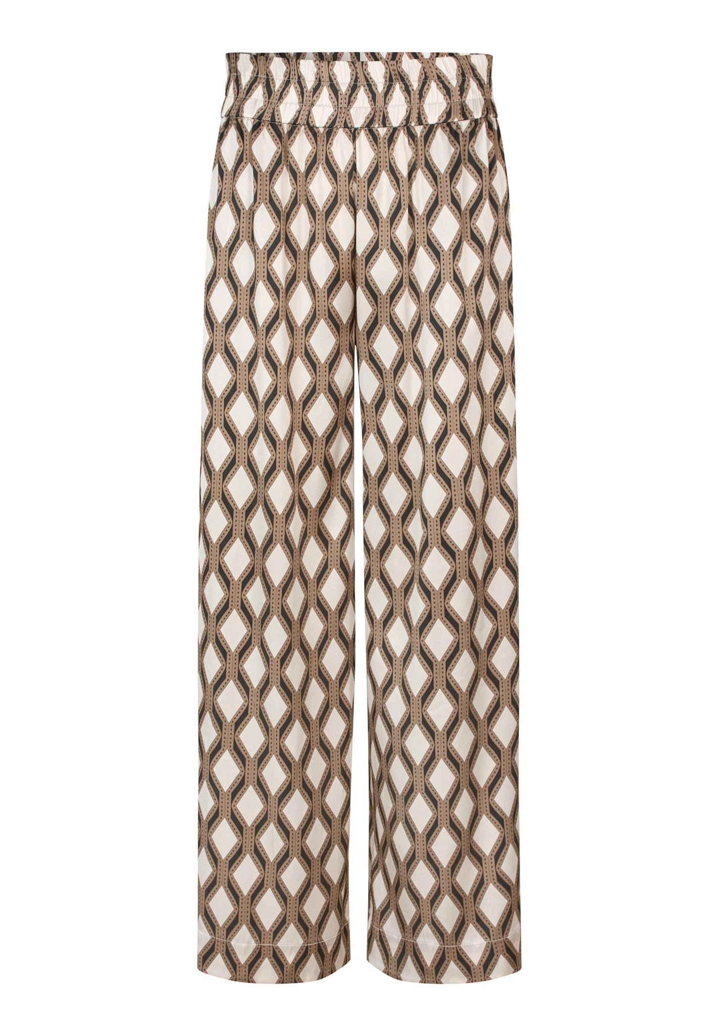 Samlende på en elastisk talje og med en almindelig pasform med lige ben, er disse silkbukser i et stilfuldt grafisk print de perfekte lette bukser, der kan matches med en skjorte eller strik til både dag- og aftenbrug. Side lommer tilføjer et ekstra element af komfort.