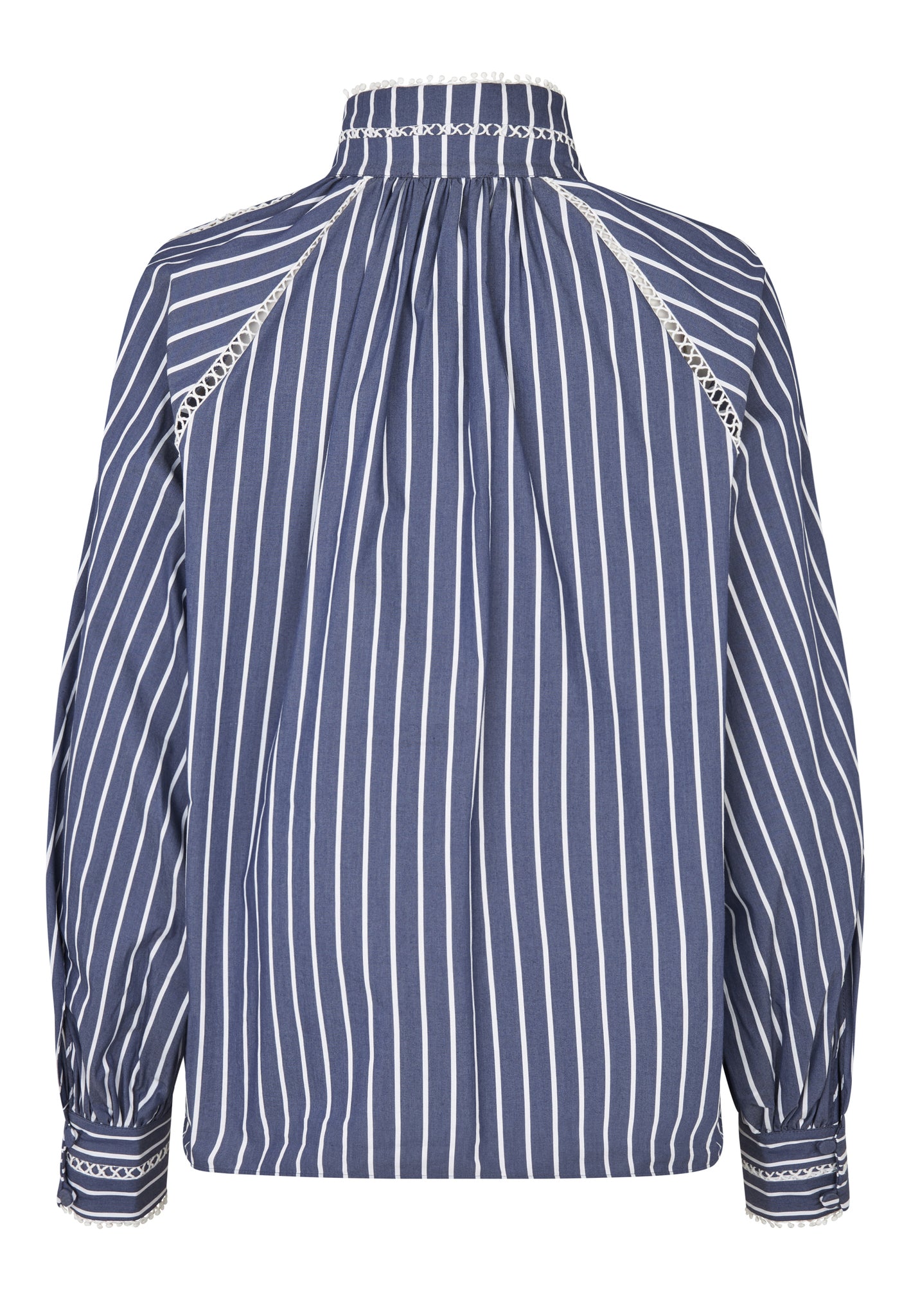 Den stribede chambray i bomuldsblend giver et frisk, let look, som gør blusen ideel til både hverdagsbrug og mere elegante anledninger. Perfekt med jeans, bukser eller nederdel for et sofistikeret og ubesværet
