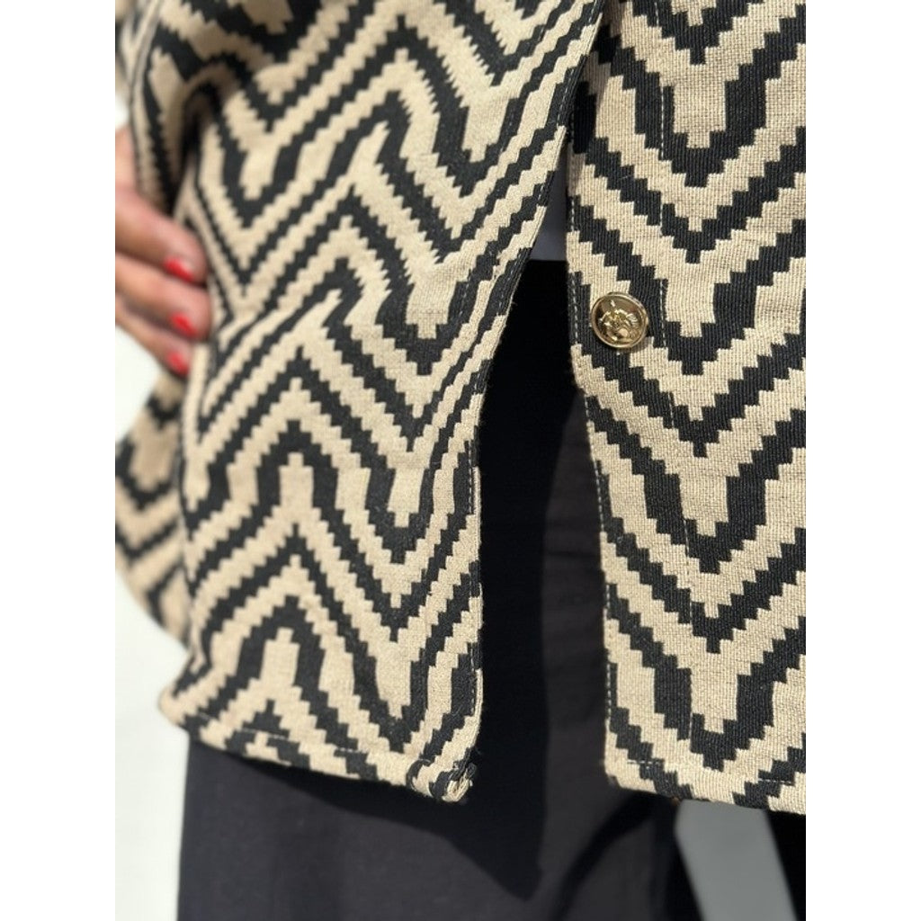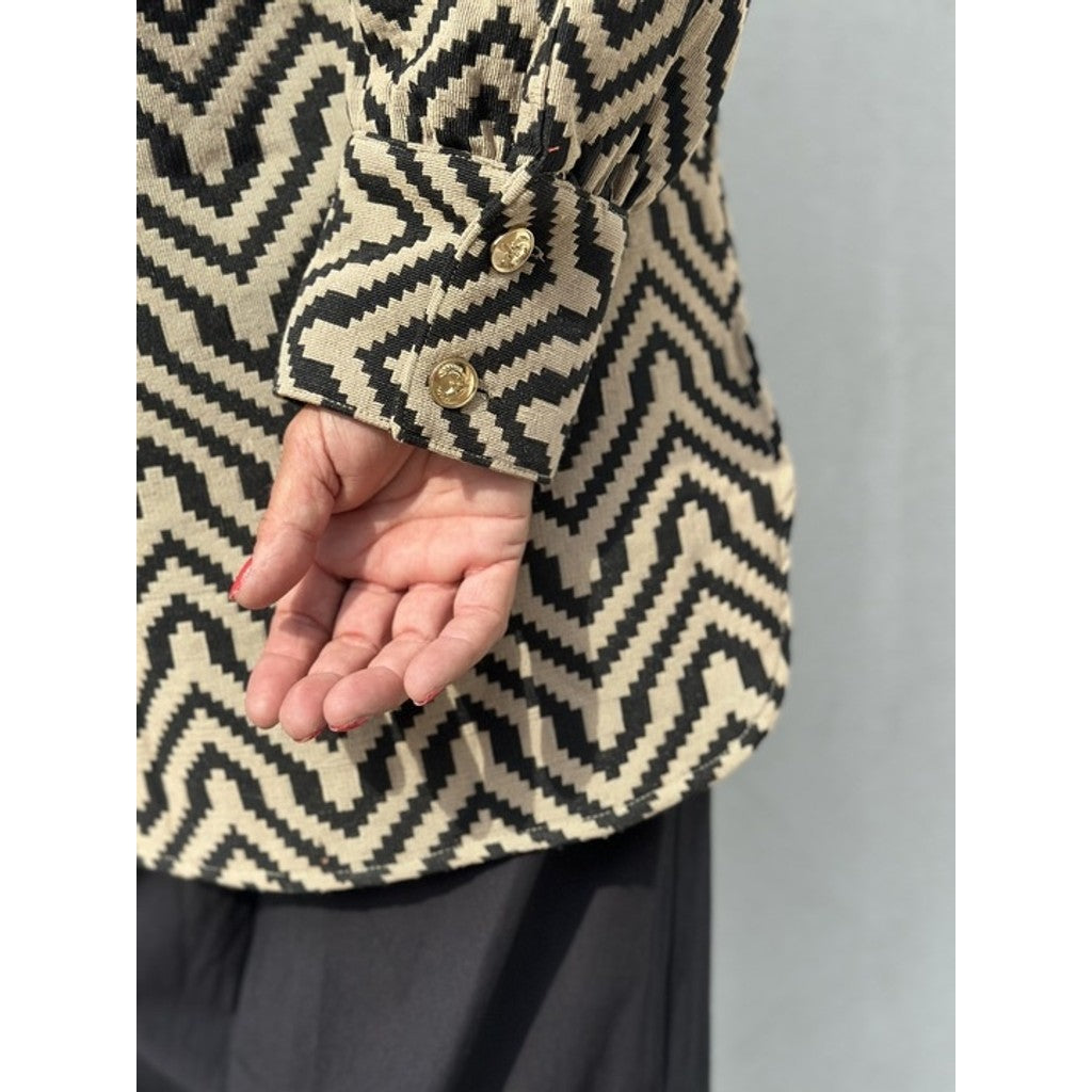 Denne lækre lange skjorte i kraftig bomuldsjacquard kan bruges både som skjorte og let jakke – et perfekt lag til overgangsvejret. Modellen har elegante knapper både på stolpen og ærmerne, som tilføjer et sofistikeret touch.