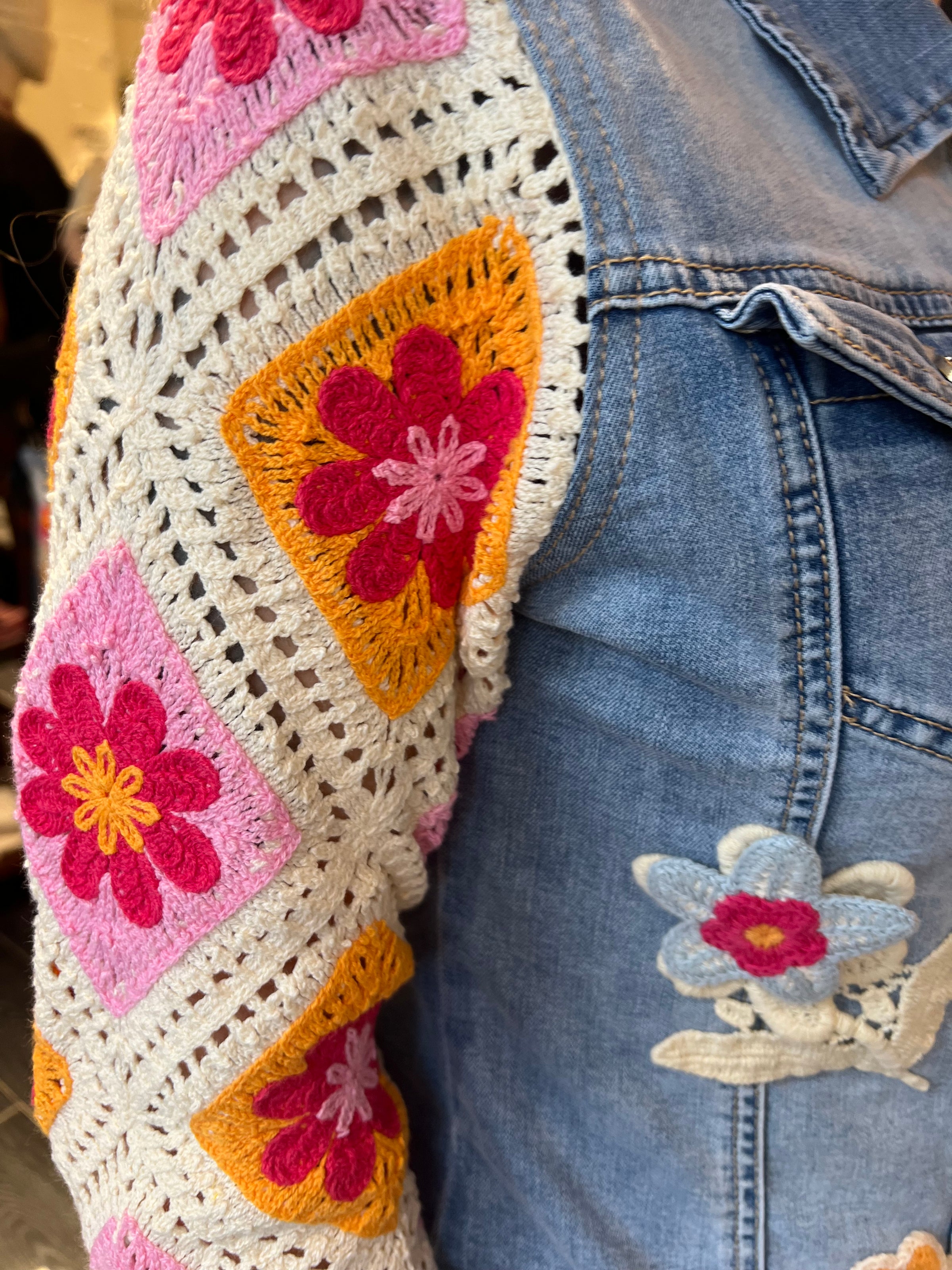 Den fineste broderet jakke fra Lecoco er kommet hjem. Den har de fineste detaljer med de broderet ærmer og de broderet blomster på jakken, som gør den helt unik og genkendelig.
