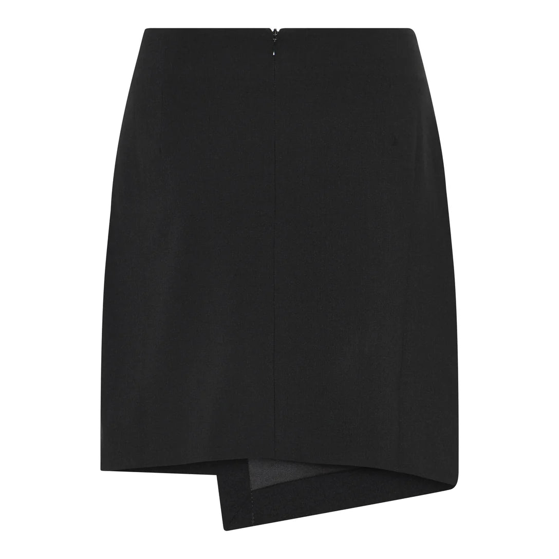 En afslappet jakkesætsnederdel med slå-om-look og en lommedetalje. Med lynlås bagpå.