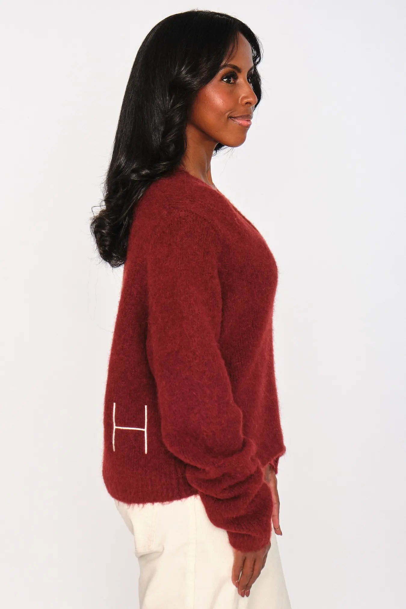 Pernille Sweater har en blød V-hals og fine ribdetaljer med diskret H-broderi forneden. Strikket i en hyggelig alpakablanding, der giver både varme og komfort. Et tidløst stykke tøj med et afslappet, men alligevel komplet udtryk.