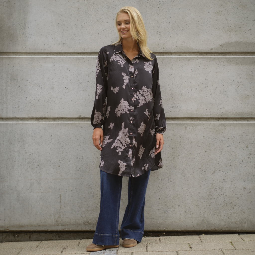 Silje skjortekjole er en super fin gennemknappet kjole med klassisk skjortekrave, lommer i siderne og lange ærmer der afsluttes med en smal smockkant .